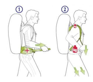 Για να το ελέγξω αυτό αρχικά ρυθμίζω τους ιμάντες της μέσης ώστε η ζώνη να σφίγγει τα οστά της λεκάνης. Εκεί θα «πέφτει» όλο το βάρος του σακιδίου και όχι στους ώμους.