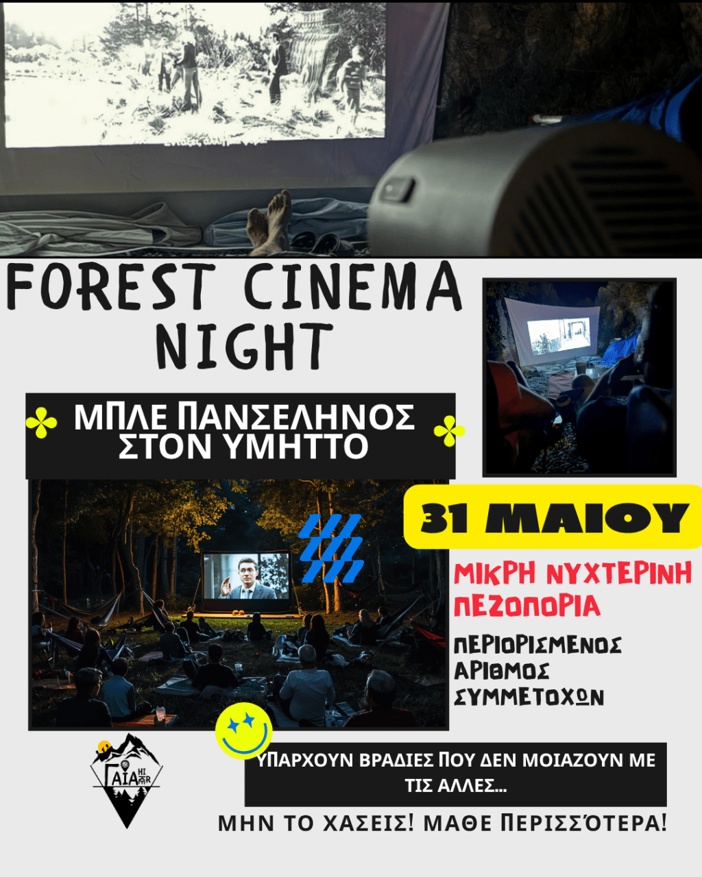 Την Κυριακή της Μπλε Πανσελήνου, ανεβαίνουμε στον Υμηττό για μια εμπειρία αλλιώτικη: μια κινηματογραφική βραδιά μέσα στο δάσος, κάτω από το φως του φεγγαριού.